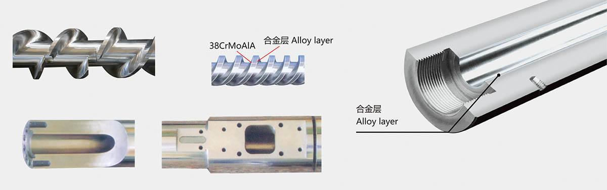 双合金机筒:基材38CrMoALA, 40Cr,42CrMo