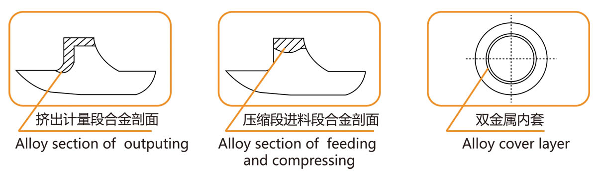 针对杂质含量较多的再生料,玻纤增强塑料及无机矿物填料(钙粉、碳粉、滑石粉等)含量较多的塑料,螺杆耐磨性好。